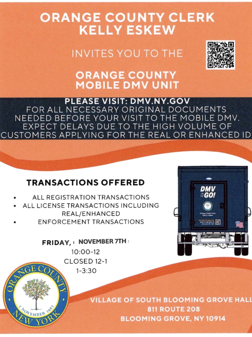 Mobile DMV at Village Hall November 7, 2025